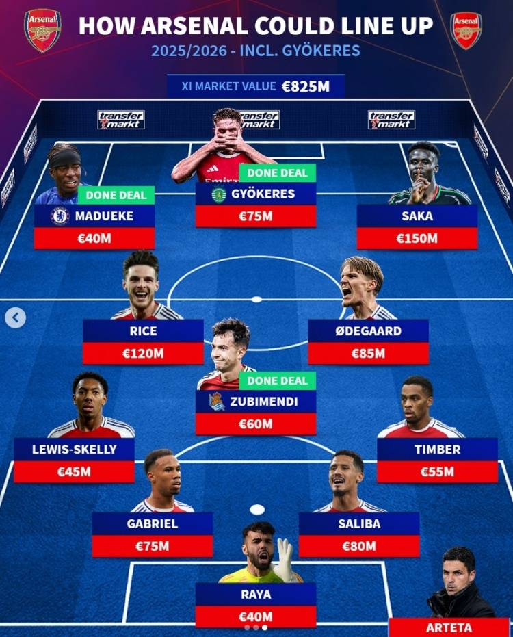 阿森纳新赛季主力阵:三新援重组攻防 萨卡赖斯打辅助